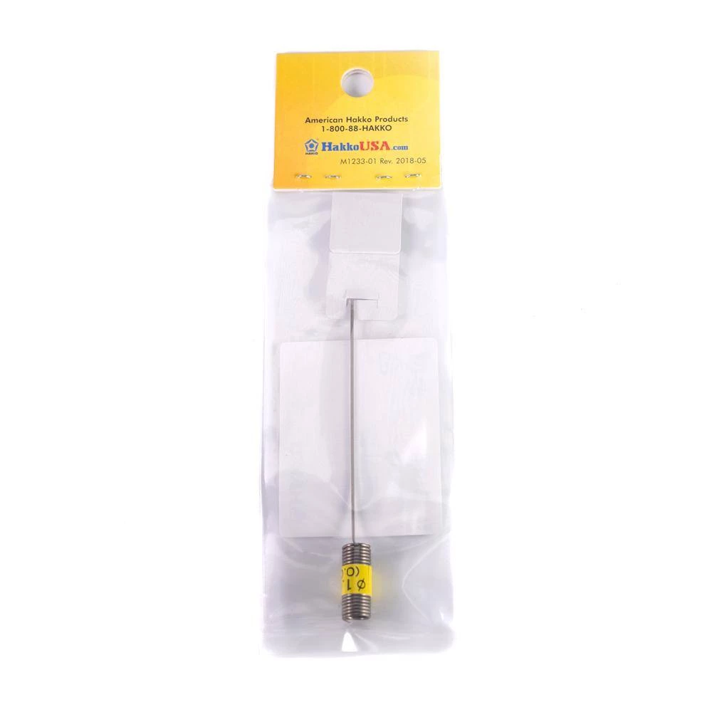 The Hakko B1087 is a cleaning pin for the Hakko 802, 807, 808, 817, 706 and 707 desoldering tools. Solder particulates can solidify inside the nozzle before reaching the filter, which can and will disrupt suction flow. Pins come in various diameters to fit various size nozzle diameters. It is advised to keep an assortment of these on hand to keep your desoldering nozzles clog-free at all times.