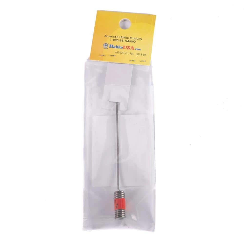 The Hakko B1089 is a cleaning pin for the Hakko 802, 807, 808, 817, 706 and 707 desoldering tools. Solder particulates can solidify inside the nozzle before reaching the filter, which can and will disrupt suction flow. Pins come in various diameters to fit various size nozzle diameters. It is advised to keep an assortment of these on hand to keep your desoldering nozzles clog-free at all times.