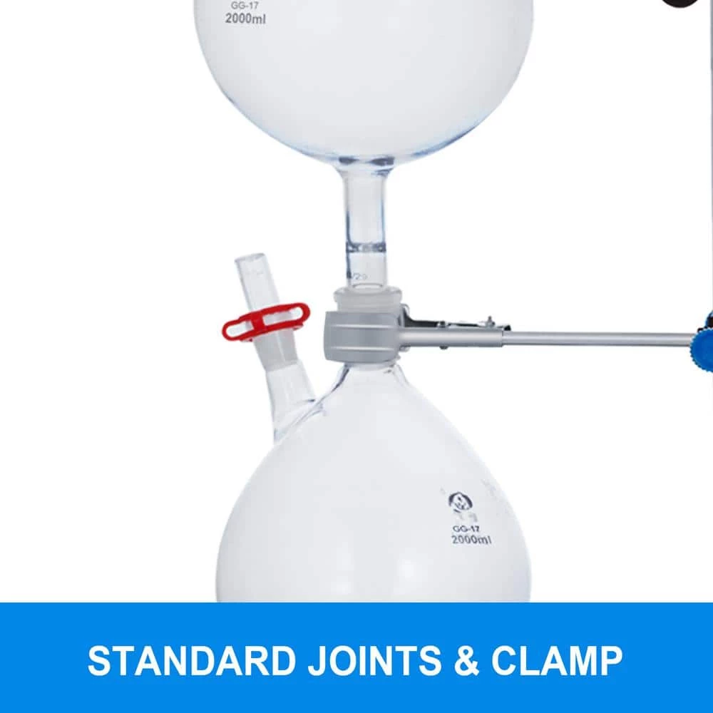 - High quality-all glassware is made of upgraded 3.3 borosilicate glass, hand blown and polished to achieve a perfect fit. The joints are all standard sizes. Includes a metal bracket with clips to secure the device firmly