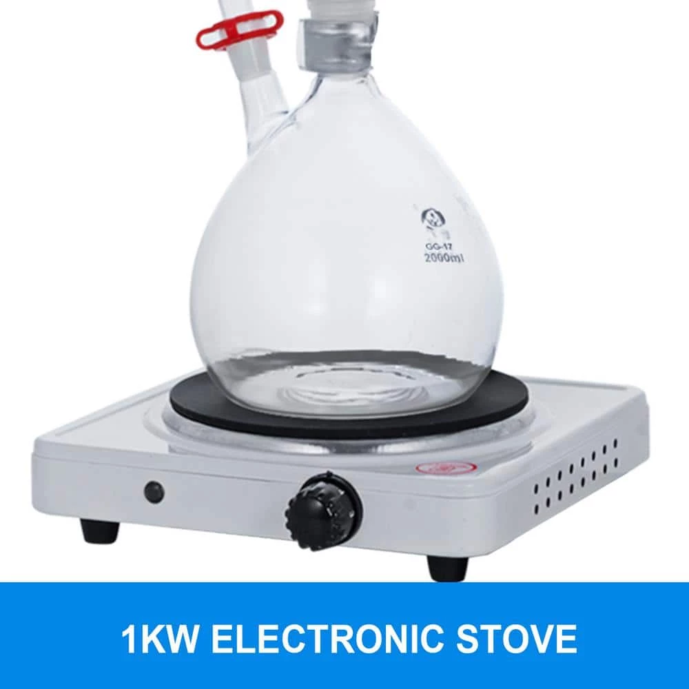 - High efficiency-Unlike the unsafe and complicated alcohol lamp heating, we provide a 1000 W electric stove to heat the boiling flask, which can get water vapor faster