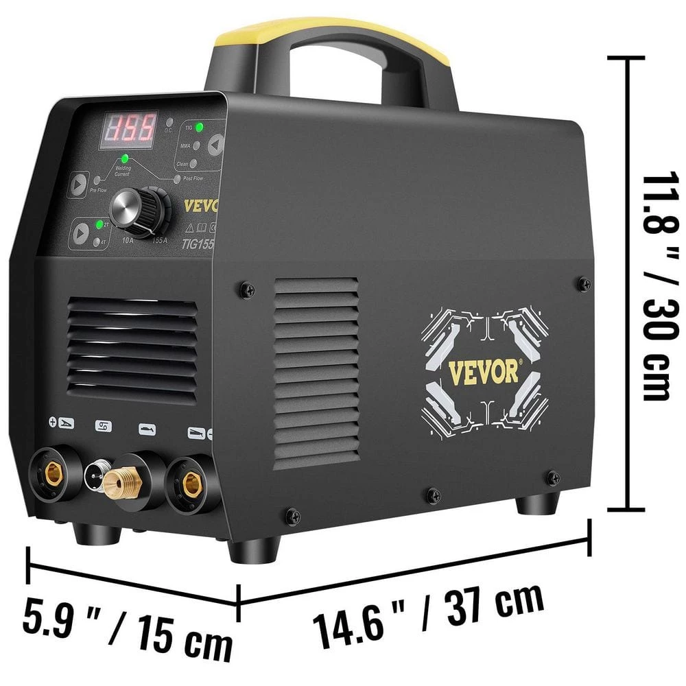 - Specifications Function TIG, ARC, Clean, Output Current 155 Amp, Input Voltage AC110-Volt plus minus 10%(50/60Hz), Duty Cycle 104 °F/30%, Suitable Metal Stainless Steel, Iron, Mild Steel, Copper, Nickel, Welding Thickness 0.1 in., Insulation Grade F, Item Size 14.6 in. L x 5.9 in. W x 11.8 in. H, Item Weight 14 lbs.
