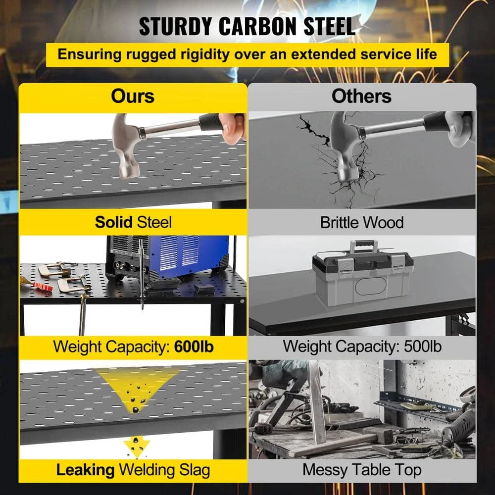 - 600 lbs. load capacity: steel-reinforced frame makes it super sturdy to support up to 600 lbs. the welding table is solid and durable for heavy-duty equipment
