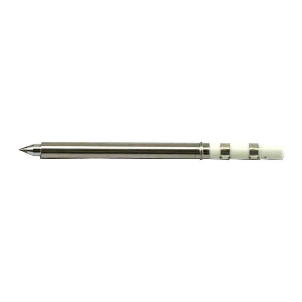 Hakko soldering iron tips are shaped from a copper bar then coated with protective iron plating. The plating is thick for long-life yet exhibits excellent heat conductivity for more efficient thermal recovery. Various shapes are available; the most popular shapes are pyramid, conical, bevel and chisel. The Hakko T11-B is a conical shape tip, which can be used for small solder joint applications. For best performance, always use authentic Hakko soldering iron tips with Hakko soldering equipment.