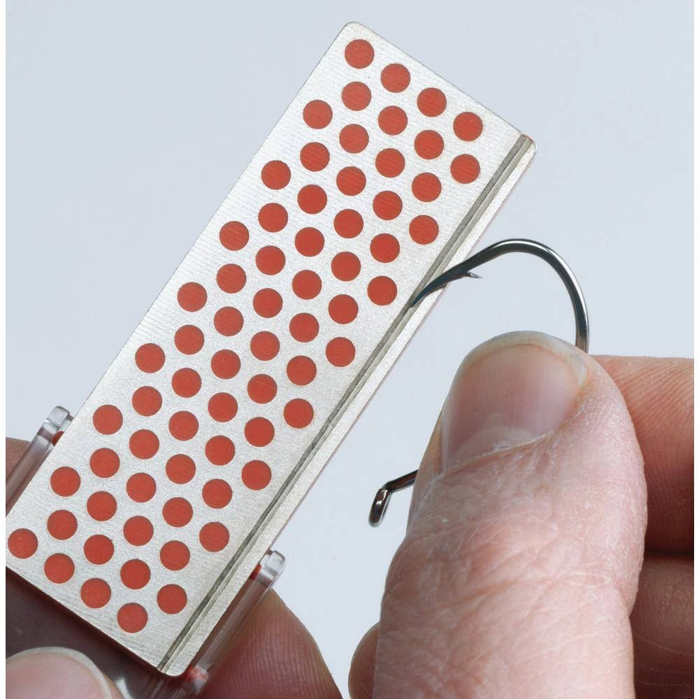 Diamond Mini-Sharp Sharpener in coarse diamond is designed so you can be ready to touch up an edge, anywhere, anytime. It is lightweight with a handy key chain swivel ring for your keys or to attach to zipper pulls or backpacks. When open, it is 5-1/2 in. long with a sharpening surface of 2-11/16 in. x 15/16 in. x 3/16 in. The folding handle protects the stone when not in use, measuring 3-1/2 in. Easy to use, you can forgets those messy oils that are required with other sharpeners; the diamond surface allows you to sharpen dry or with water. DMT employs a proprietary process resulting in a micronized mono crystalline diamond that covers evenly across the stone for a hard wearing surface guaranteed to provide consistent, efficient sharpening for years to come. DMT’s signature polka dot pattern provides for slightly recessed holes to collect the metal fines removed during sharpening to prevent loading. Enjoy faster sharpening: 5 or 6 strokes per edge versus 30 on a conventional abrasive. This allows you to spend less time sharpening edges and more time using them. Sharpen with coarse diamond (45 micron/325 meshes) to restore a neglected edge quickly.