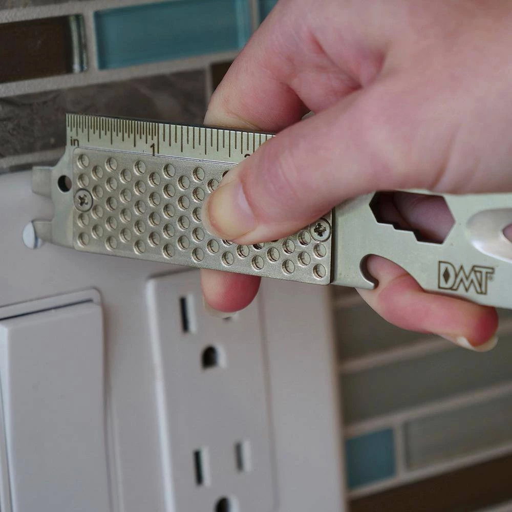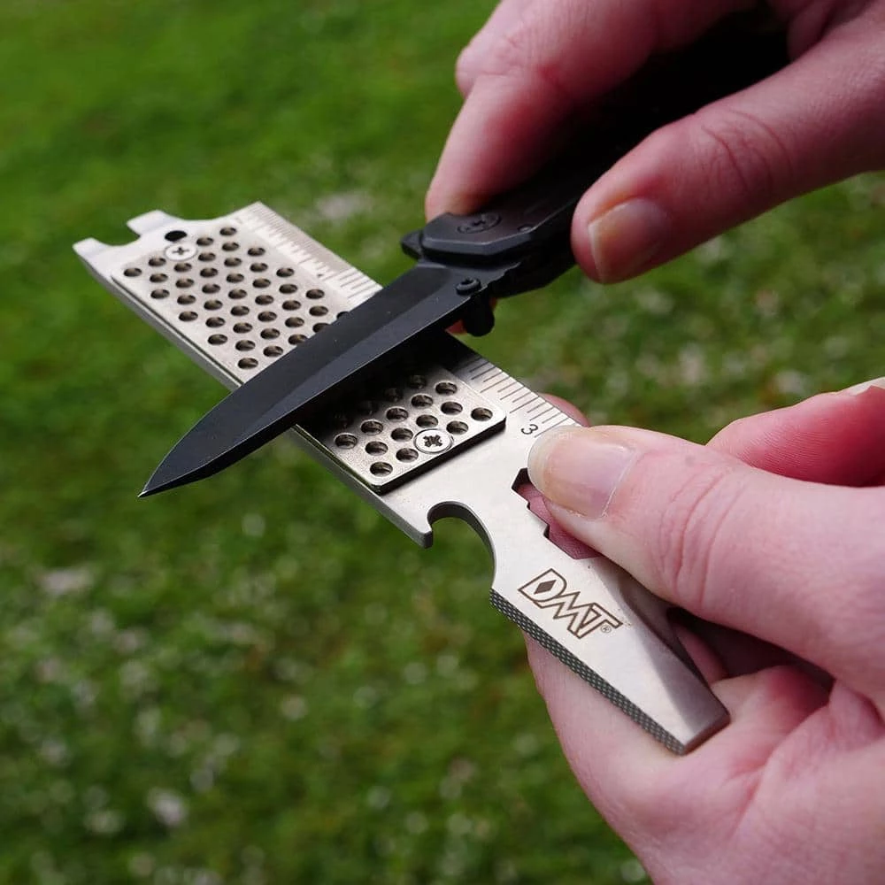 Every day carry 70 mm sharpener that includes other tools like 7 mm, 8 mm and 10 mm wrench, 2 flat head screwdrivers, bottle opener, wire stripped, file edge and metric-English ruler that includes a lanyard hole for easy carry. Tool: 5-1/2 in. x 1-1/4 in. x 3/16 in. Sharpening surface 2.76 in. x 0.98 in.