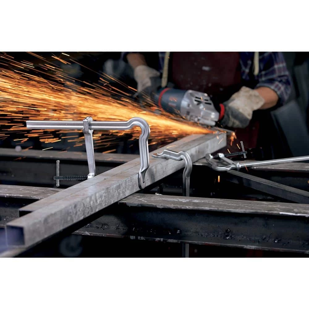 The BESSEY 12 in. version of the RSC Series clamp is an all-steel metal fabrication clamp that is known for its vibration resistance. All clamps that are tightened via a threaded spindle mechanism will work loose when subjected to extended periods of vibration. The patented “OMEGA” bends RSC series clamps are designed to resist vibration by adding a lateral load to the spindle and by adding a degree of positive resistance during high vibration activities.