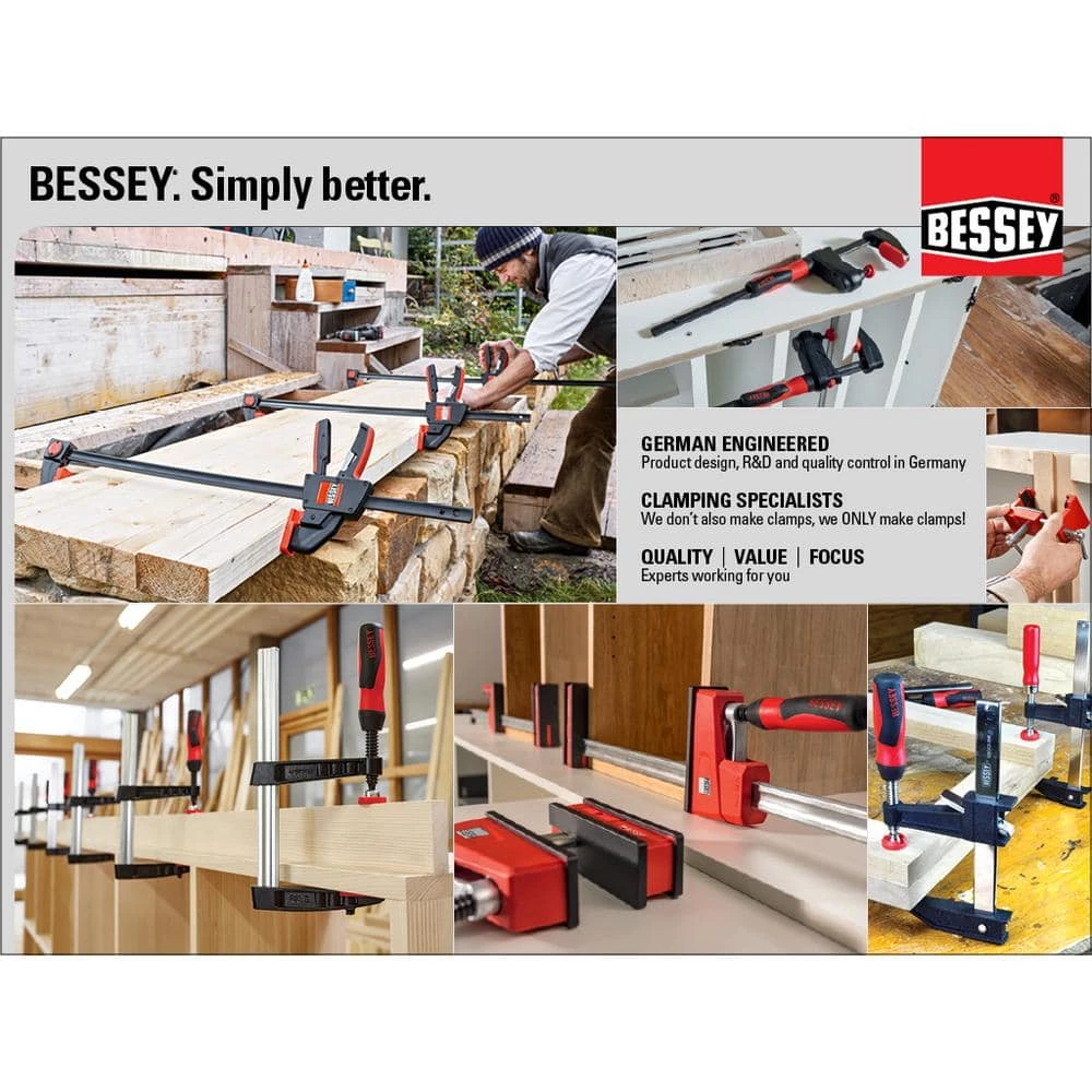 - Profiled rail of BESSEY precision steel provides great stability and strength