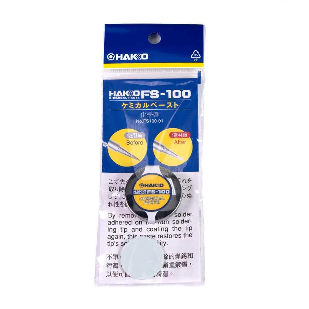 The Hakko FS-100 is a special formulated paste that re-tins your soldering iron tips. The FS-100 will help rejuvenate and restore very oxidized and/or corroded soldering iron tips back to useful life. It is recommended to have the Hakko FS-100 on hand at all times to prevent stoppage of work due to a poor performing soldering iron tip.