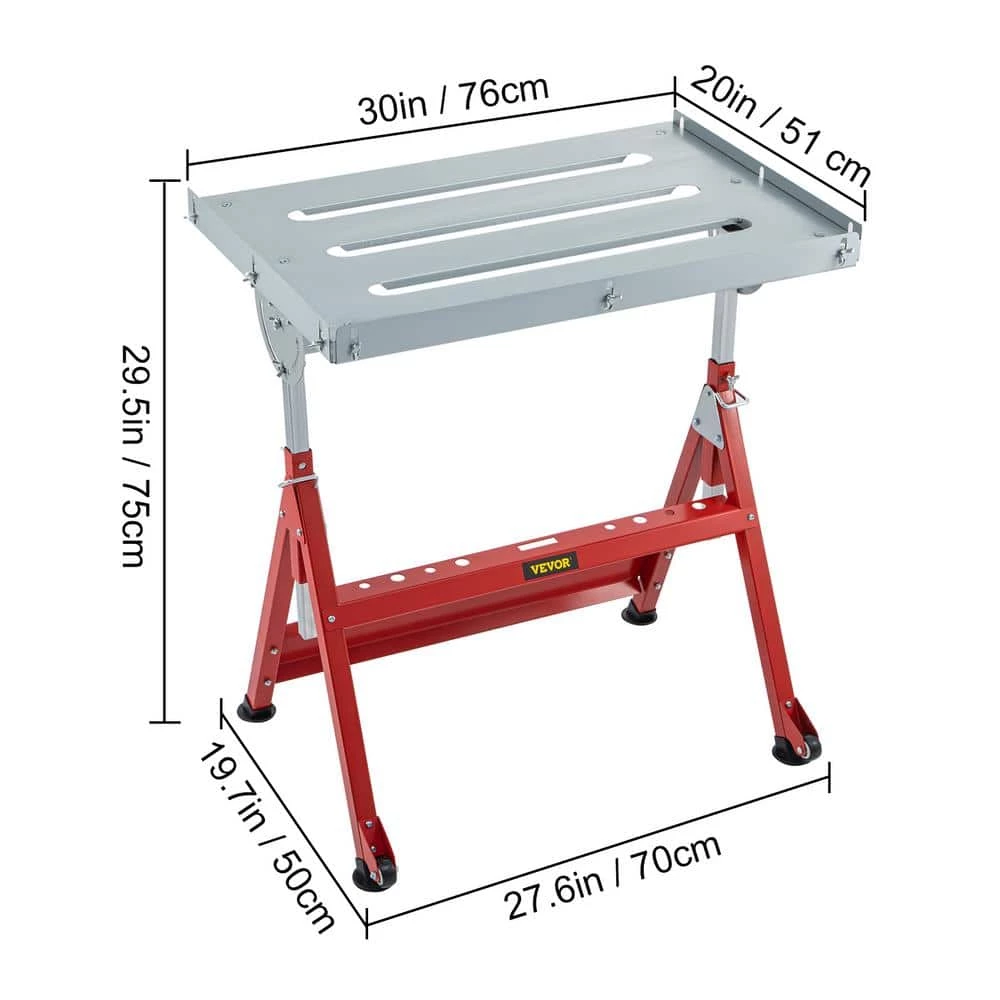 Steel Welding Table. Adjustable Height and Tiltable Tabletop and Easy to Move. VEVOR’s metal welding table with adjustable height and tiltable tabletop provides extra flexibility and versatility. Simultaneously, those thoughtful details of slots, guide rails and the tool rack have drastically added convenience for your weld. Even the most unruly and awkwardly shaped projects can find an appropriate spot on our welding table.