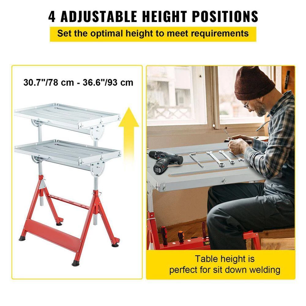 Steel Welding Table. Adjustable Height, Tiltable Tabletop and Easy to Move. VEVOR’s metal welding table with adjustable height and tiltable tabletop provides extra flexibility and versatility. Simultaneously, those thoughtful details of slots, guide rails, and the tool rack have drastically added convenience for your weld. Even the most unruly and awkwardly shaped projects can find an appropriate spot on our welding table.